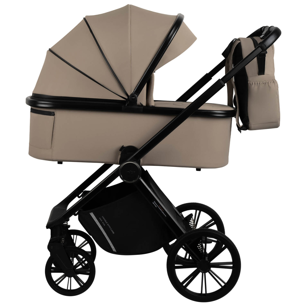 Такая конструкция делает коляску удобной для прогулок по городским дорогам и парковым дорожкам.
