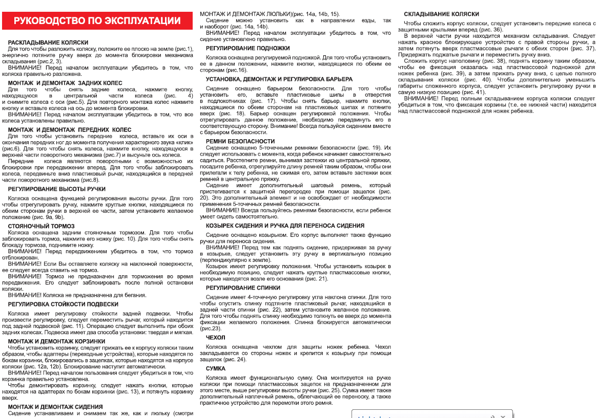 ➢ максимальный вес коляски — 14,7 кг.